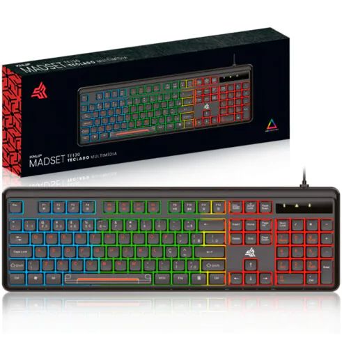 Teclado Gamer com fio USB e iluminação LED RGB, projetado para oferecer conexão estável e precisa em cada comando.
