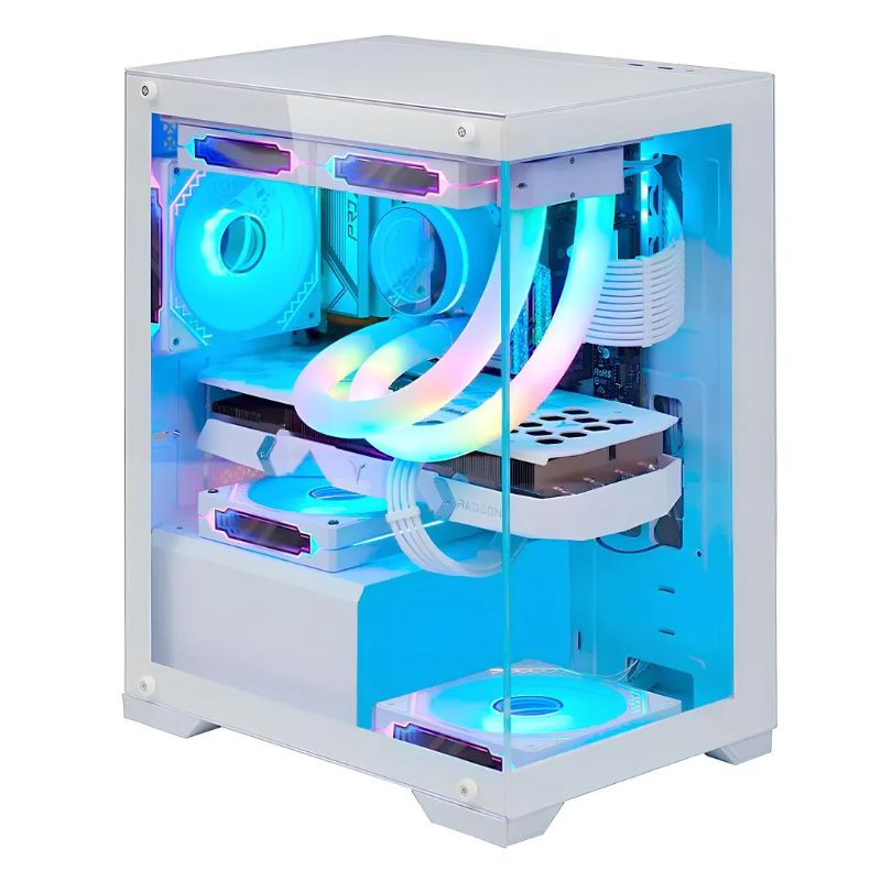 O Gabinete Gamer Nebula Mini Metal Red M6 é uma opção compacta e elegante, perfeita para setups de alta performance em espaços reduzidos. Com acabamento branco e design minimalista, ele traz um visual moderno e discreto. A lateral em vidro temperado permite exibir os componentes internos e a iluminação RGB, destacando o sistema de forma sofisticada.
